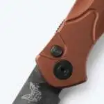 Designed with purpose and built to last, the AUTO OSBORNE sets a high bar for durability and performance matched only by our promise that it will be yours, for life. Inspired by overland adventure and stylish daily carry, the 9400BK-03 Auto Osborne is our nod to the rugged folks who enjoy dusty, gritty, challenging trek across natural terrain. Reimagined with fast-deploying push-button automatic action and an integrated spine safety, this latest variant of the 9400 Auto Osborne features a wear-and corrosion-resistant CPM-MagnaCut (60-62 HRC) reverse tanto blade with DLC Battlewash finish. Clad in lightweight Burnt Copper anodized 6061-T6 aluminum handle scales to tackle the outdoors, the 9400BK-03 Auto Osborne combines rapid response and timeless knife design for hardcore exploration.