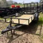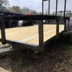 | GVWR: 3,500# Top Rail: 2×2 tube 1’ open Coupler: 5k coupler Axle: 3,500# idler Safety Chain: 1/4″ Suspension: Multi leaf Jack: 2k top wind Tire/Wheel: 15” 205/75/R15 Tongue: 3×2 angle 3/16” Frame: 2×2 angle 3/16 Crossmembers: 2×2 angle 3/16 Paint: 2-Stage Urethane 4’ Mesh Gate 4-Pin Wire Plug |