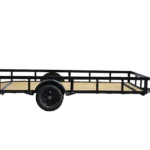 | GVWR 2990# Axle – 3500# Idler Axle Coupler – 2” A Frame Suspension – Leaf Spring Safety Chain – 1/4” Grade 30 Tire/Wheel – 205/75/R15, 5 Lug, 6 Ply Jack – 2k Side Jack Deck – Pressure Treated Tongue – 3” Channel Lights – DOT LED Frame – 3x2x3/16 Angle Paint – 2 Stage High Solid Urethane Crossmembers – 3x2x3/16 4’ Mesh Gate Top Rail 3×2 Tube 4 Pin Wire Plug |
