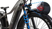 E-Scout Pro adopts a 750W BAFANG SUTTO Brushless Hub Motor to gain enough power with speeds reaching up to 28 MPH by the pedal, and 20 MPH by the throttle, helping you conquer any terrain.