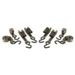Straps 1 inch x 8 feet premium strength ratchet tie down. Made with a plastic coated s hook to prevent causing damage to your vehicle or cargo. 1500lb capacity Weather resistant