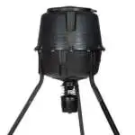The Deer Feeder Pro II Tripod is one of the most economical options for a reliable wildlife feeder. The tough polymer hopper will hold more than 200 pounds of corn and features the Pro Classic II Feeder Kit with an adjustable funnel, plastic plate, ABS plastic housing, feed-level estimator, battery indicator and external power port. The Easy Set programmable digital timer has been upgraded to allow scheduling of 10 feed times per day, 1-60 seconds in duration, specific days of the week, and Hi/Med/Low spin cast settings. Timer display includes battery level indicator and feed level estimator information. Coiled cable connecting timer and kit allows you to adjust settings with the timer in your hand. The Deer Feeder Pro II is easy to fill with the fill opening sitting at 5.5 ft. tall.