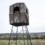 The Quad Roof Kit Enclosure measures 48″ tall above the shooting rail of the Quad-pod. Padded, full surround 36″ high shooting rail, steel floor, and 2 Muddy Flex-tek seats fit perfectly underneath this roof, giving a standing height of 7′. Includes blind securing tie-downs, and features 4 zippered windows.image