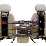 The Back Seat Gun Sling secures up to three shotguns or scoped rifles to the back of any vehicle seat for safe, stylish and convenient transport. It is constructed of heavy-duty, water-resistant fabric for tough, long lasting durability. Also has, non-slip pockets and a safety stop Velcro loop that provides extra protection. The external pockets provide additional storage for hunting and shooting accessories or ammo. This is the most heavy duty and durable gun sling on the market today providing years of use and enjoyment. This model Back Seat Gun Sling comes in Black.